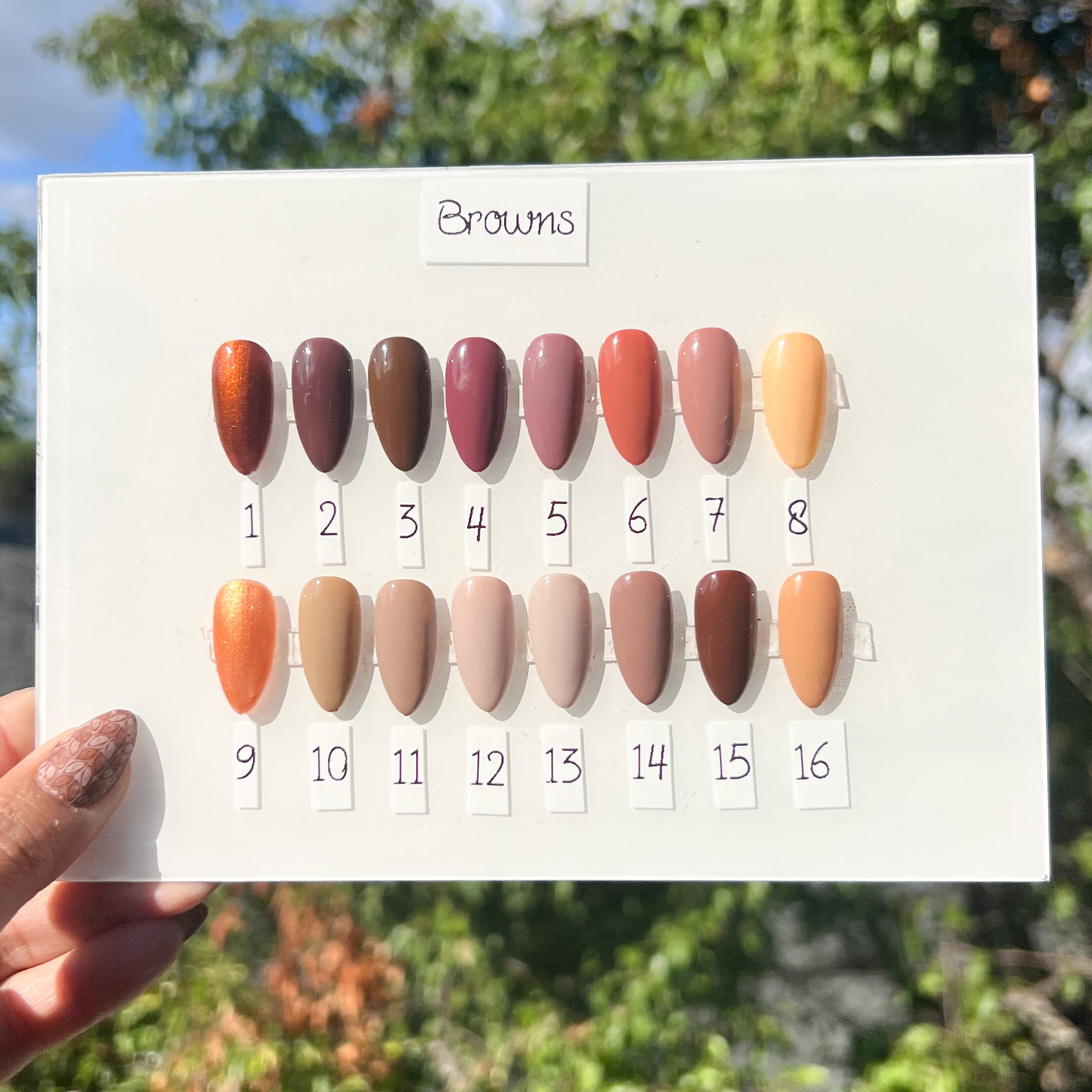 Send us an email or DM us on instagram BEFORE placing your order with the picture your desired set. Each nail can be different colors, as long as they are solid.
