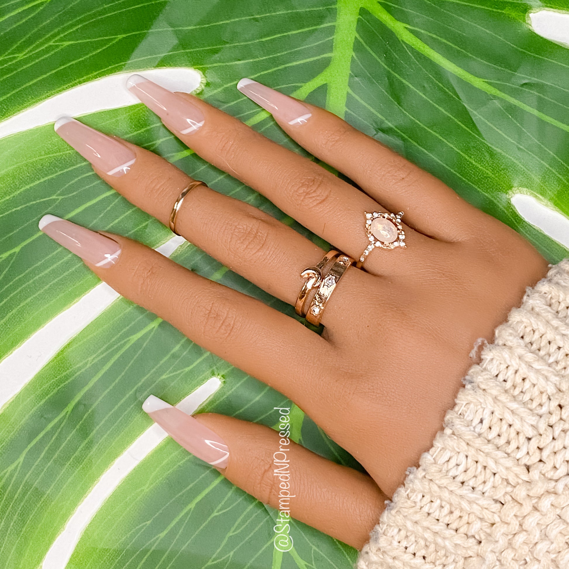 Corner French nails with a simple line at the bottom with a pink base (no longer available).