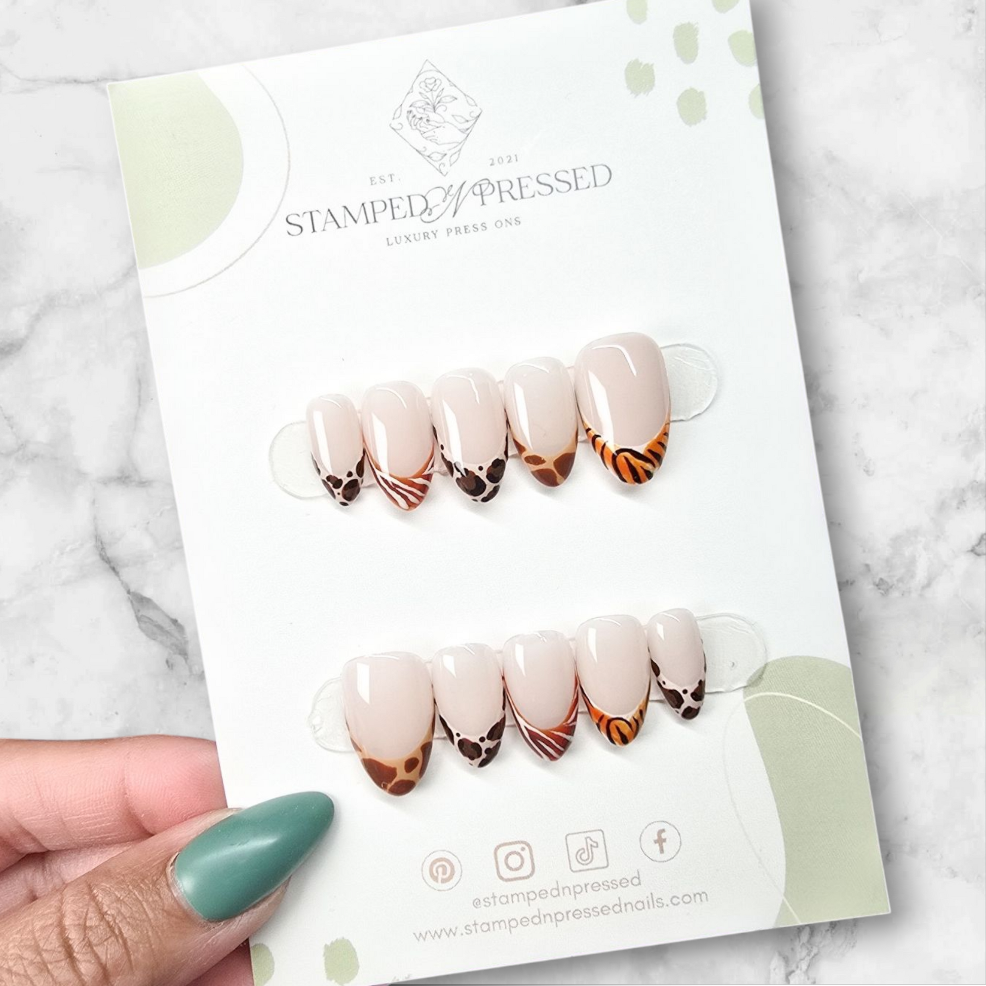 Unleash your fierce and stylish side with our Zoo Keeper press-on nail set! Featuring a chic nude base with bold animal print French tips, this set blends sophistication with a touch of untamed beauty. Designed for a flawless, salon-quality finish, these luxury press-ons are handcrafted with high-quality materials for durability and a natural look.